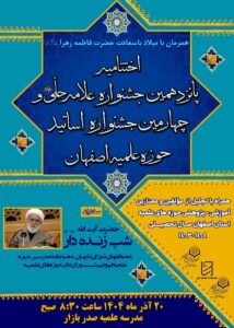 آیین اختتاميه پانزدهمین جشنواره استانی علامه حلی(ره) و چهارمین جشنواره اساتید حوزه علمیه اصفهان ،با سخنرانی آیت الله طباطبایینژاد مدیر حوزه علمیه اصفهان و آیت الله شبزندهدار، رئیس شورای عالی حوزههای علمیه و عضو محترم شورای نگهبان روز پنجشنبه 20 آذرماه از ساعت ۸:۳۰ صبح تا ۱۱ ،در مدرسه علمیه صدر بازار اصفهان برگزار خواهد شد.